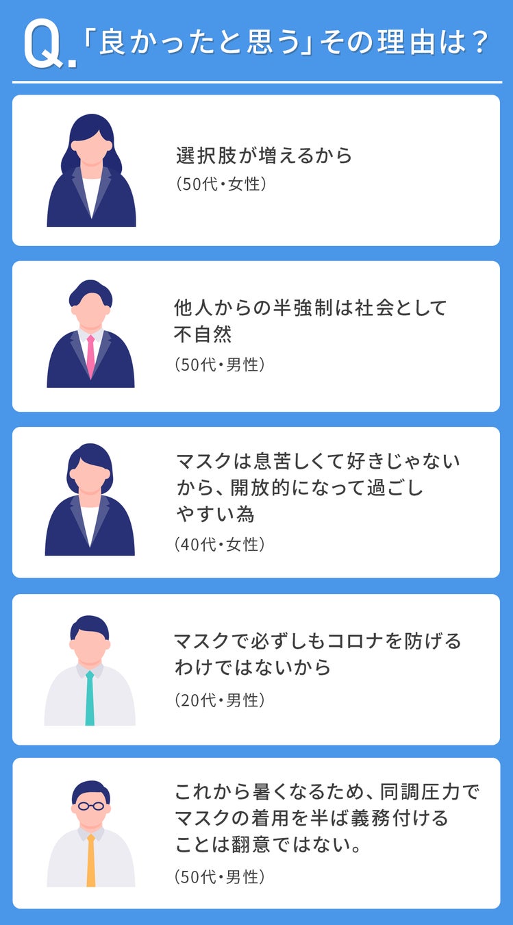 続いて、マスクの着用が個人の判断に変更されて、良かったと思うか聞いてみました。