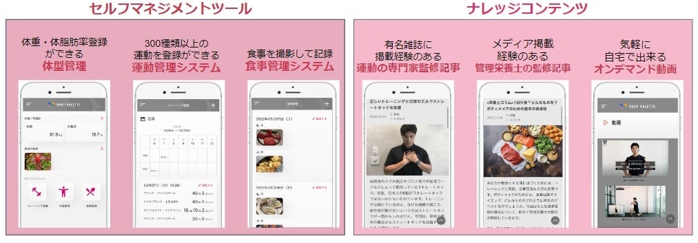ボディパレットはフィジカルマネジメント(身体管理)とニュートリションマネジメント(栄養管理)の2つを両輪としてコンテンツを展開していきます。