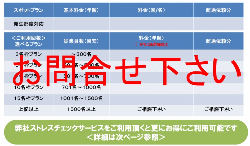 企業の従業員数や昨年の医師面接指導の実施数などを目安にして頂き、ご利用枠を予め選択頂くと料金が割安となります。