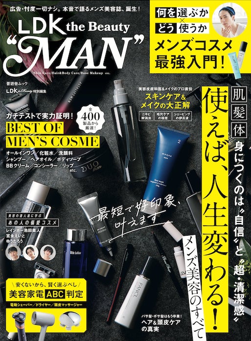 今、熱い盛り上がりを見せているメンズ美容の世界。男性向けアイテムが続々新登場するなど、若い世代はもちろん、30代以降の男性でも身だしなみに気を遣う人が増えています。『LDK the Beauty “MAN”』では、「興味はあるけどまだやれてない」「そもそも何を使えば良いかわからない」というあなたのために、初めてでも使いやすくて実力も間違いナシのベストアイテム&テクをご紹介。この一冊で、メンズ美容の全てがわかります!