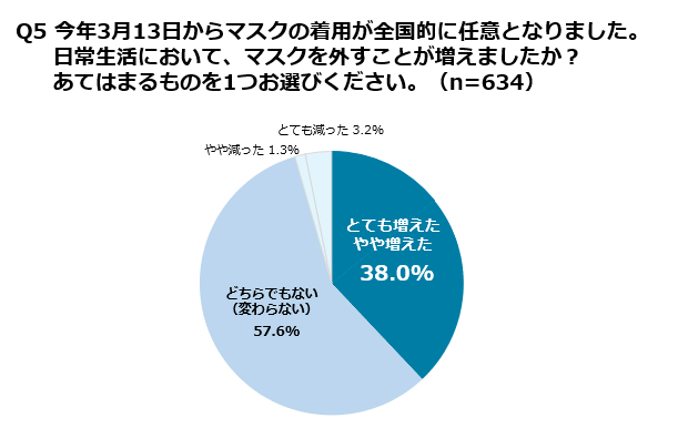 ◇マスク着用が任意となる中、マスクを外す機会が増えたと回答した方は38%