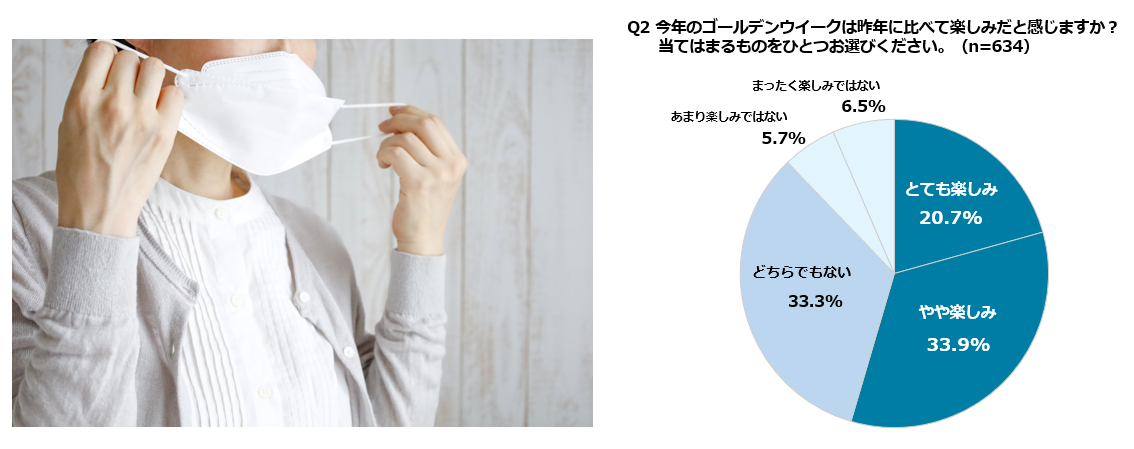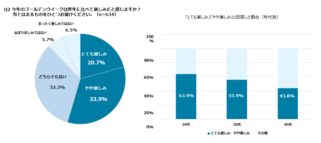 - Ⅰ.今年のゴールデンウイークは昨年に比べて「楽しみ」と回答した方は54.6%、 特に若年層ではその割合が高まっていることが判明。