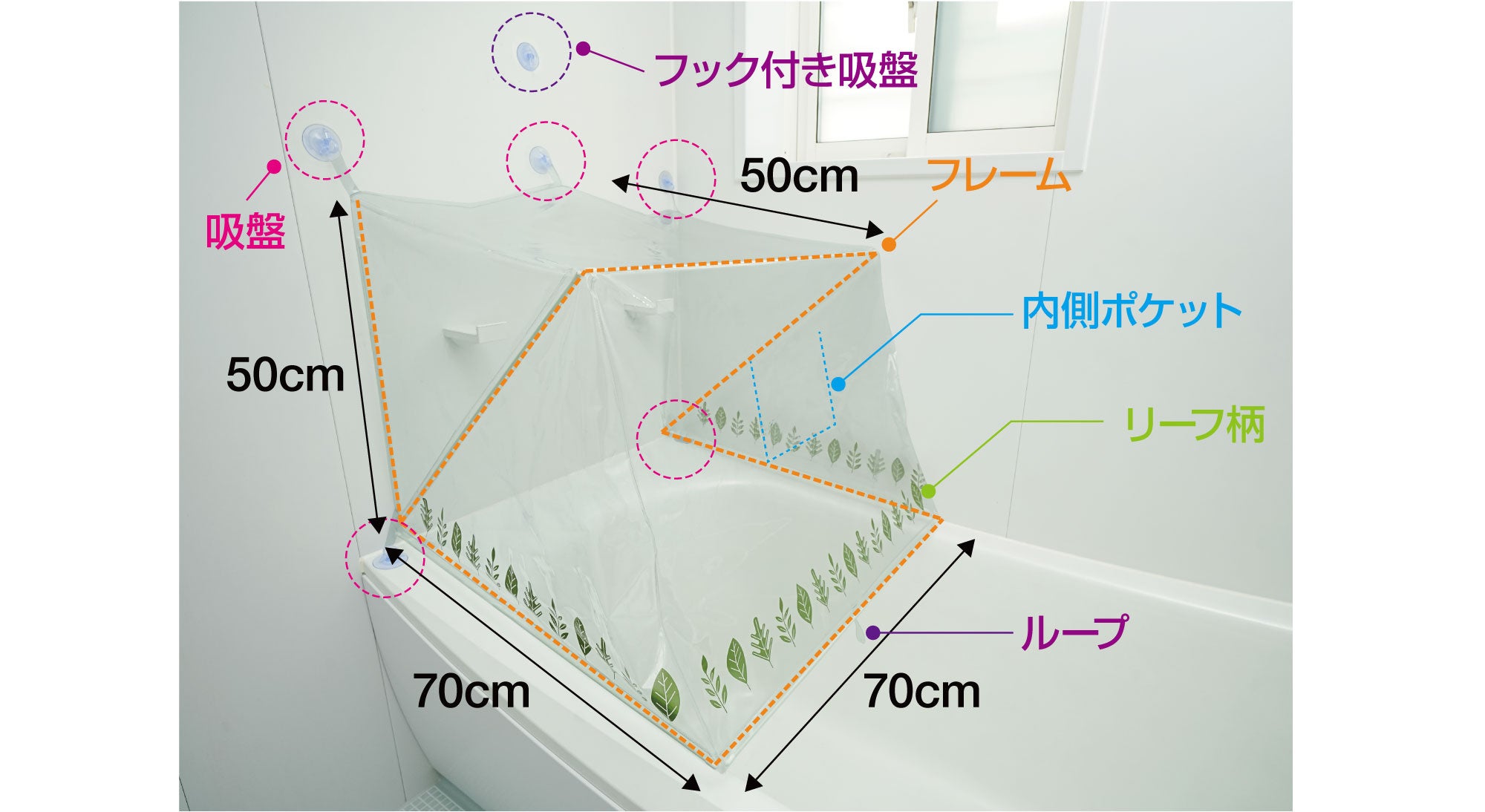 約1分で設置可能!本品を広げ、6つの吸盤をお風呂の壁と浴槽に貼り付けるだけでOK!そのままお湯張りも出来ます。蛇腹構造でパタパタっと開いて出入りも簡単♪使用後も折りたたんで専用フックに引っかけるだけでスッキリ収納で片付け不要です。