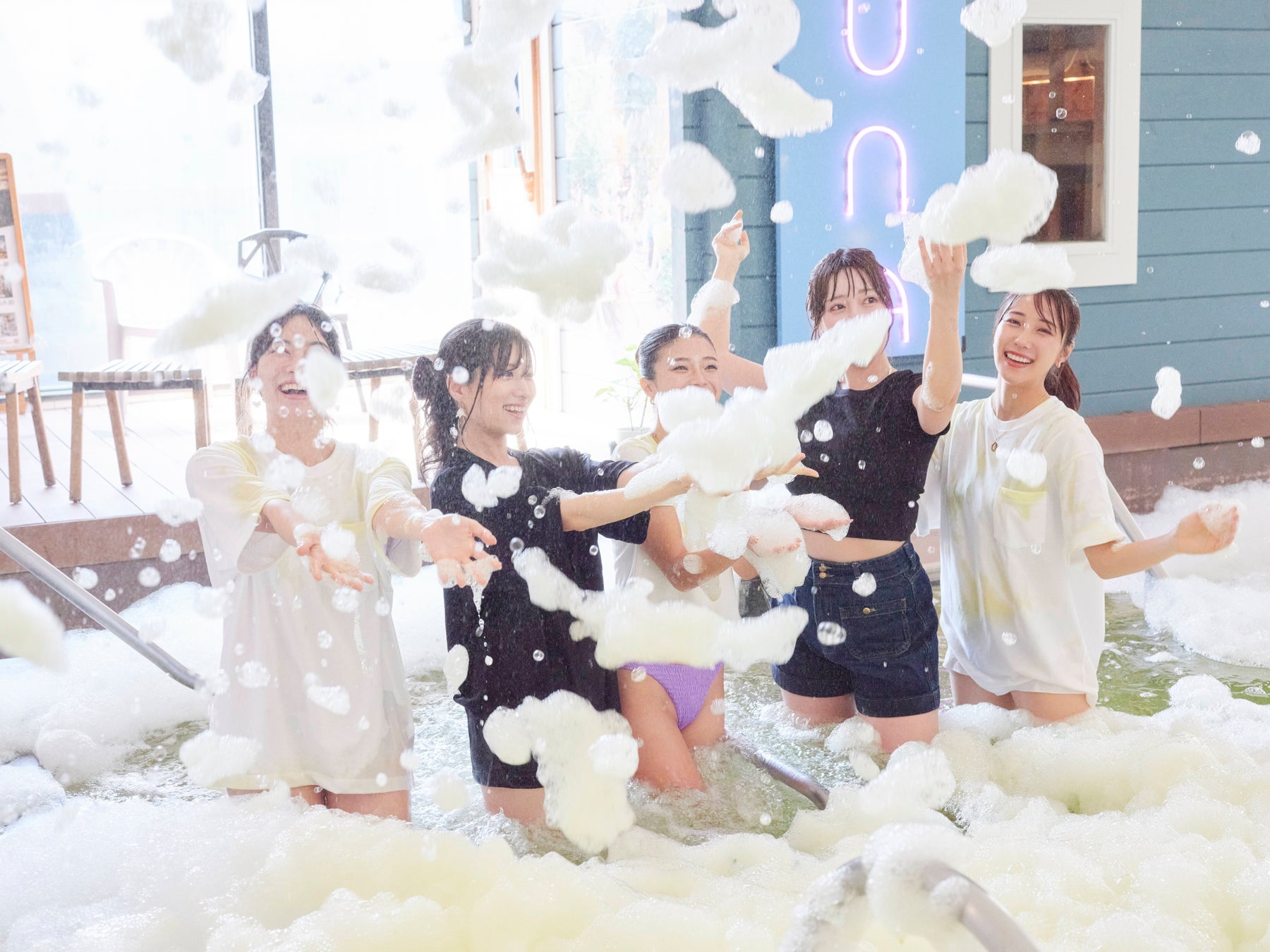 イベント期間中は、88 by MEDULLAのホイップクリームをイメージしたピンク、グリーン、イエローの泡に埋もれる、泡パーティーを開催いたします。