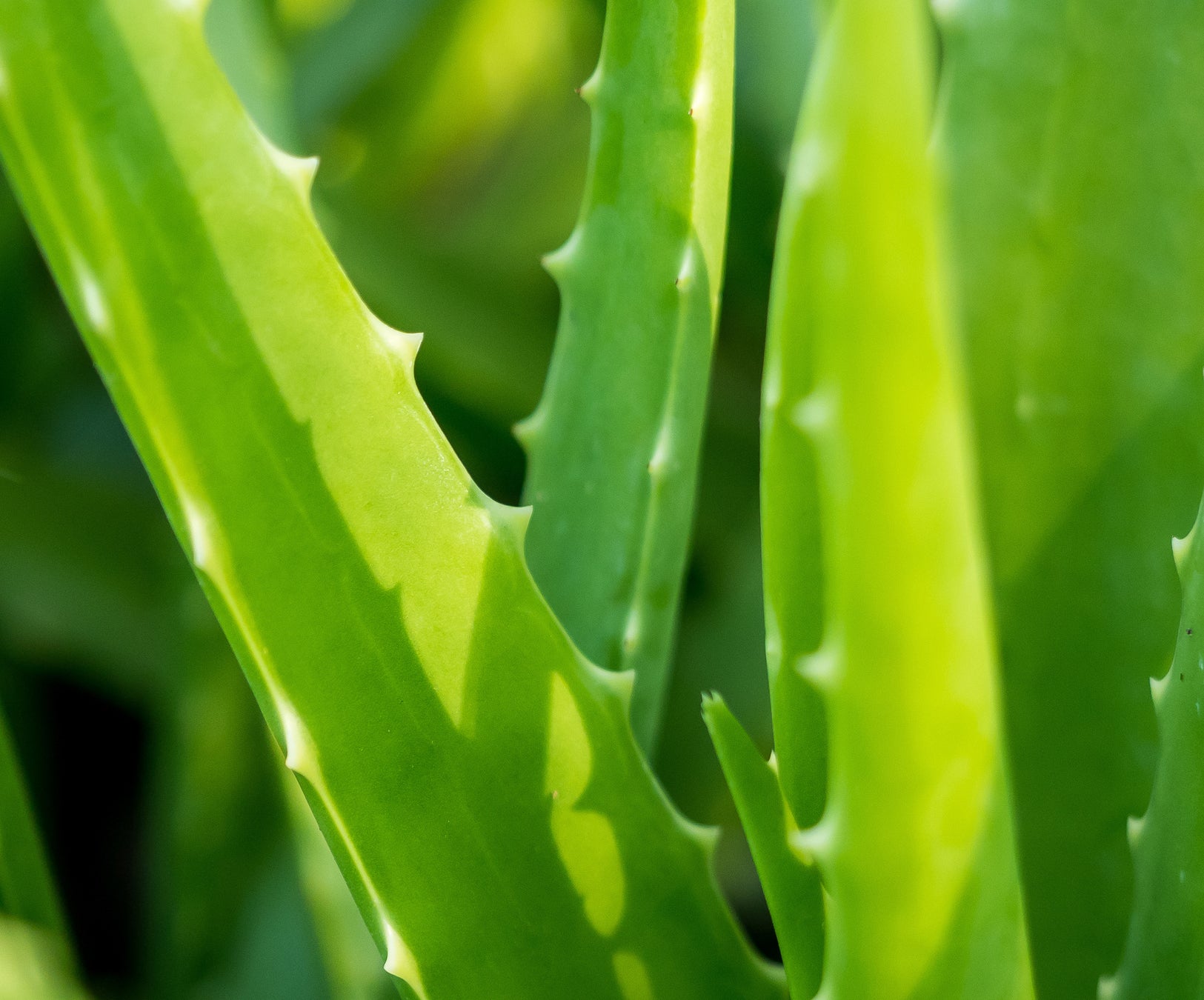 水分保持に非常に優れていて、肌にハリとうるおいを与えます。アロエの葉肉には、アミノ酸、ビタミン、ミネラル、食物繊維、ムコ多糖類、酵素などが多く含まれております。