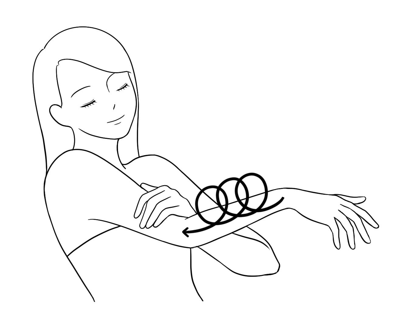 3-肌のごわつきが気になる部分は丁寧にくるくると、やさしくマッサージし、その後、十分に洗い流してください。