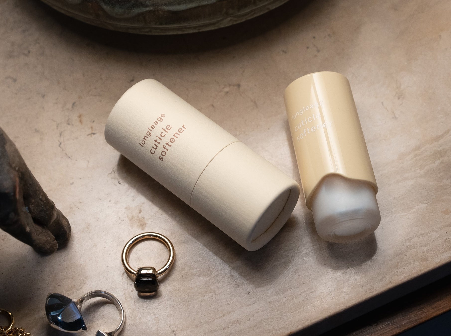 今回キューティクル ソフナーのキャップには淡いベージュカラーが選ばれました。甘皮やルーズスキンのケア、美しく健康な爪への思いをイメージし、肌に触れる優しい感覚が表現されています。外箱も丸い紙管が採用され、より上質で美しいフォルムが実現しました。