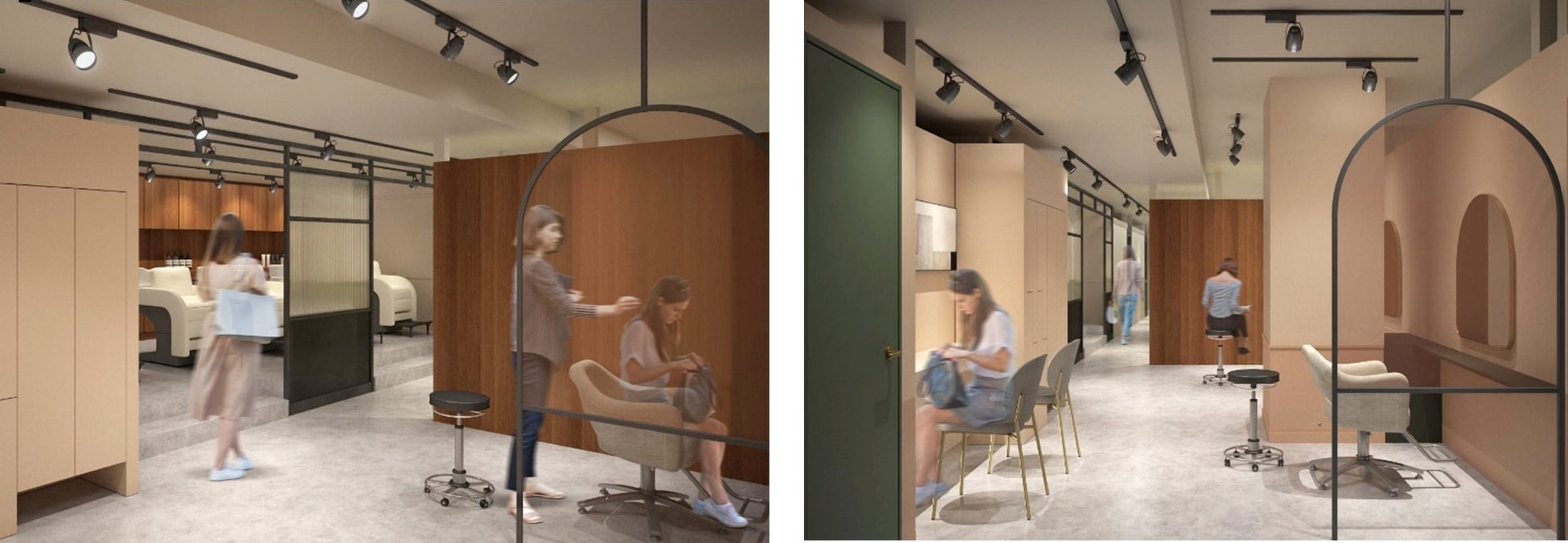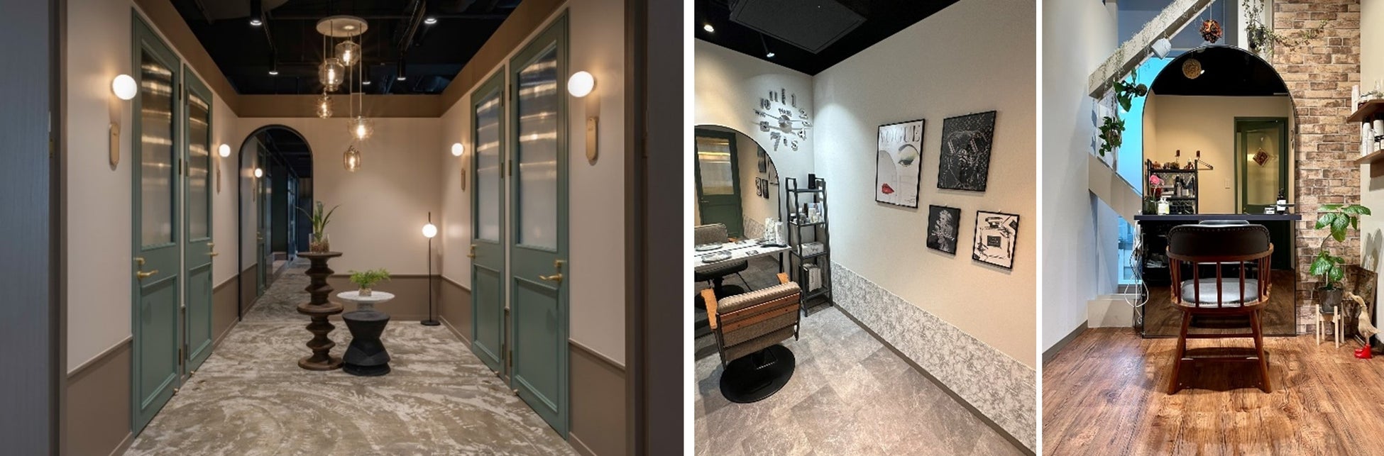 市川店では、働く人の希望に合わせた空間を提供できるよう、自由なスタイルの美容を表現でき本格的な独立をお考えの方向け「完全個室」と、開放的な区画で独立のファーストステップとしてご利用の方向け「占有スペース」の2パターンをご用意しました。また、美容系プロフェッショナルたちの様々な働き方にお応えできるよう、市川店では初のアイラッシュ専用個室もご用意しております。