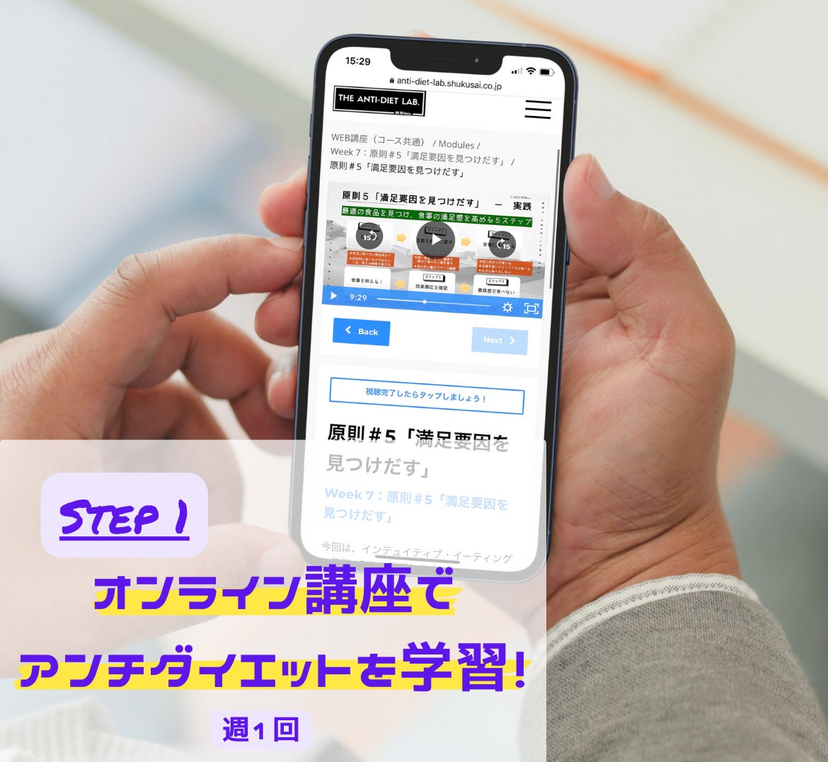 『アンチダイエットラボ』では、アンチダイエット理論を学習できる「WEB講座」に加え、アンチダイエットの実践・習慣化に役立つ「モバイルアプリ」、専門家による「オンラインコーチング」の3つを展開しており、オンライン完結型で、忙しい方でも簡単・手軽にサービスを利用できる点でご好評をいただいております。