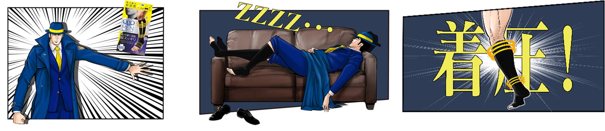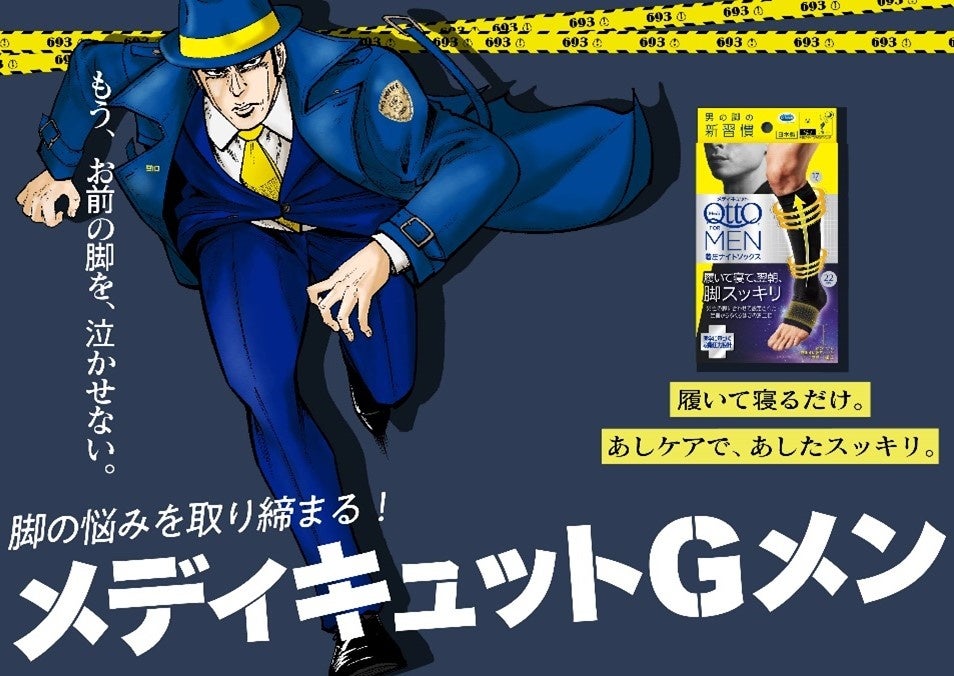 メディキュットGメンは、世の男性が脚を酷使している実状を伝えると同時に、脚ケアの必要性を訴えるために生まれた、メディキュット For MENの公式キャラクターです。ふくらはぎは、身体を支えている人間の身体でも重要な部分です。しかしながら、脚に不安を抱えながらも放置していたり、脚が悲鳴を上げたまま我慢をしていたりと、重要性の理解とケアへの関心は決して十分とは言えません。そんな世の男性たちの現状を憂い、男性の脚を救うため、“取り締まり活動”に勤しんでいるのがメディキュットGメンです。今後もメディキュットGメンによる発信、そして取り締まり活動を通して、男性の脚ケアの重要性を啓発してまいります。