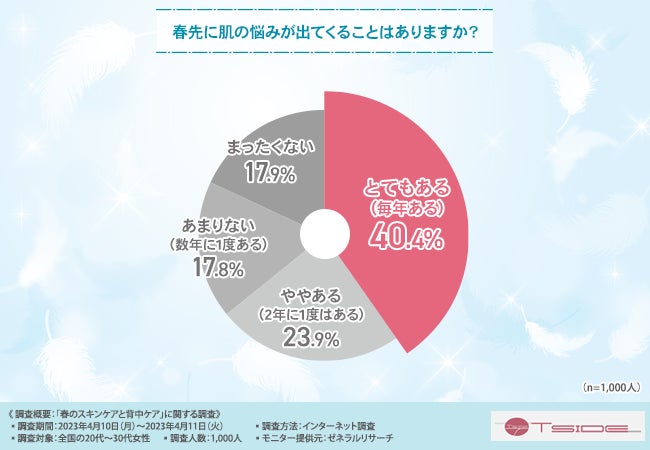 毎年のように春先に肌の悩みを感じる方が4割いるようです。