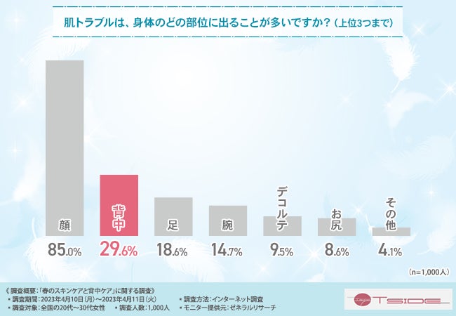 そこで今回、『アクロパス(背中ケアパッチ)』を販売する株式会社ティーサイド(http://t-side.net/)は、全国の20代~30代女性を対象に、「春のスキンケアと背中ケア」に関する調査を実施しました。