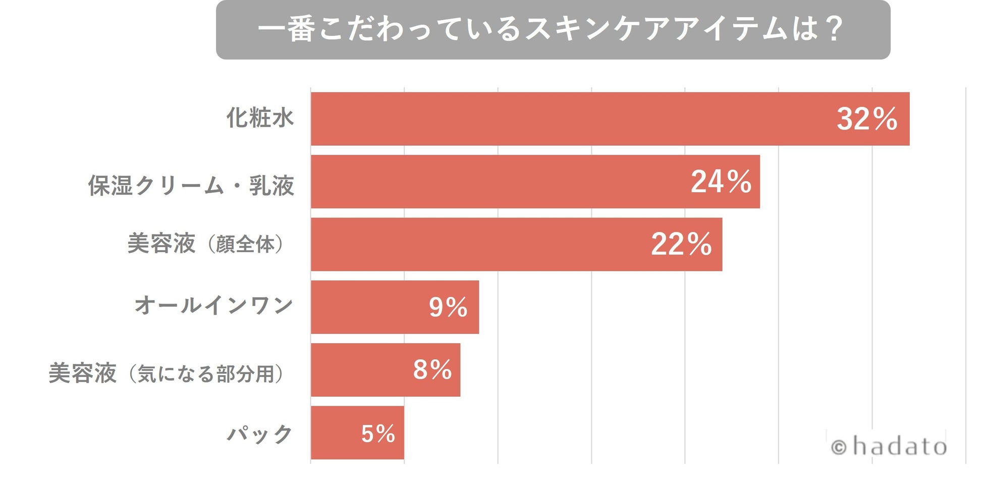 一番こだわっているスキンケアアイテムの1位は「化粧水」という結果に。