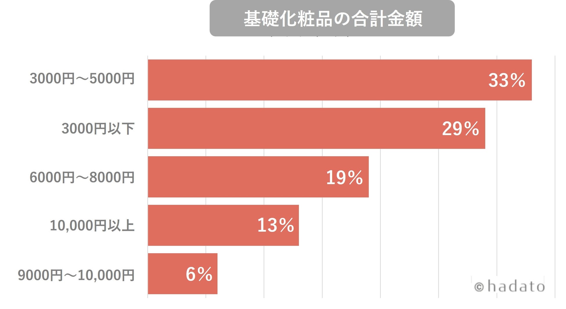 いつも使用している基礎化粧品の合計金額は「3000円~5000円」という回答が一番多い結果になりました。