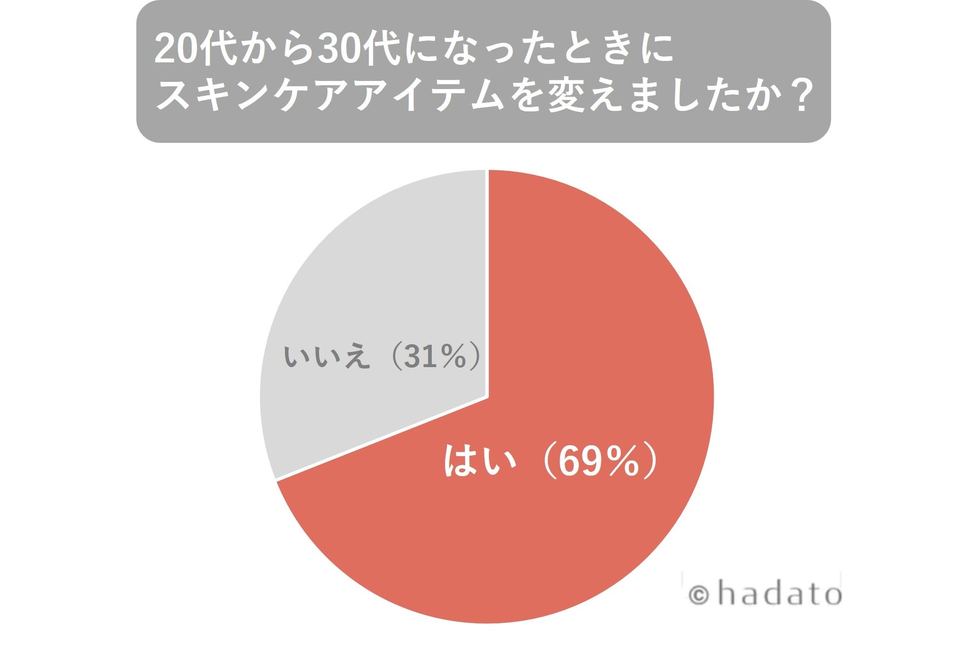 スキンケアアイテムを変えた方は全体の69%と、多くの方が30代になりスキンケアアイテムを見直しているという結果になりました。