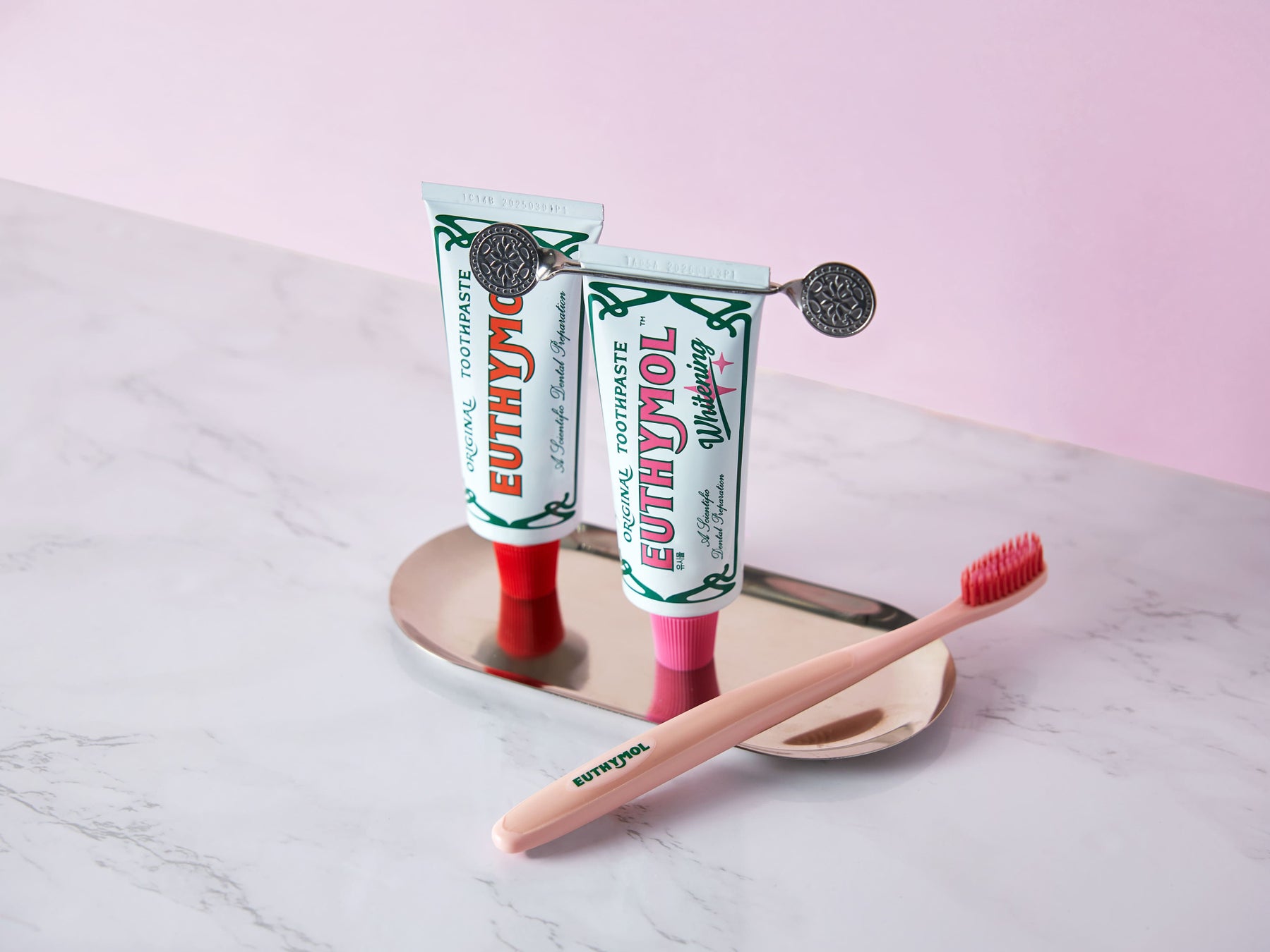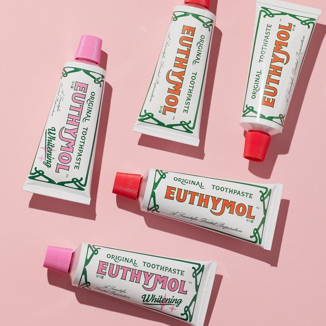 EUTHYMOL特有のクラシックでレトロ感のある洗練されたデザインとピンク色の歯磨き粉タイプで、口内に爽快感を与えるのが特徴です。また一般的に使用される低密度ポリエチレン(LDPE)材質ではなく、リサイクルが可能であるアルミニウムで作られ、クラシックなムードを極大化しています。EUTHYMOLブランドは既存のオリジナルラインナップを元に2023年に新商品「EUTHYMOLホワイトニング美白歯磨き粉」を発売して以来、早くも人気に火がついています。