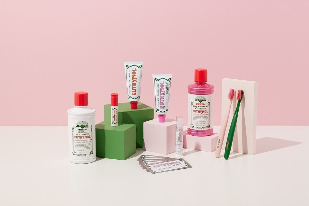 EUTHYMOL特有のクラシックでレトロ感のある洗練されたデザインとピンク色の歯磨き粉タイプで、口内に爽快感を与えるのが特徴です。また一般的に使用される低密度ポリエチレン(LDPE)材質ではなく、リサイクルが可能であるアルミニウムで作られ、クラシックなムードを極大化しています。EUTHYMOLブランドは既存のオリジナルラインナップを元に2023年に新商品「EUTHYMOLホワイトニング美白歯磨き粉」を発売して以来、早くも人気に火がついています。