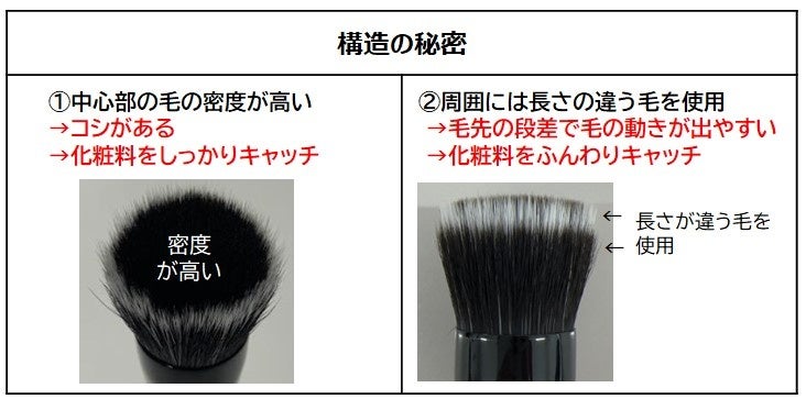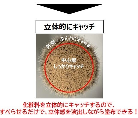 ・中心部の毛の密度を高くし、コシ感+化粧料をしっかりキャッチします