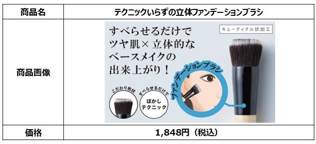 本商品は、仕上りとなめらかな肌あたりにこだわり、環境への配慮も意識した同シリーズのコンセプトはそのままに、特許形状を採用したテクニックフリーで立体フェイスが叶うファンデーションブラシです。