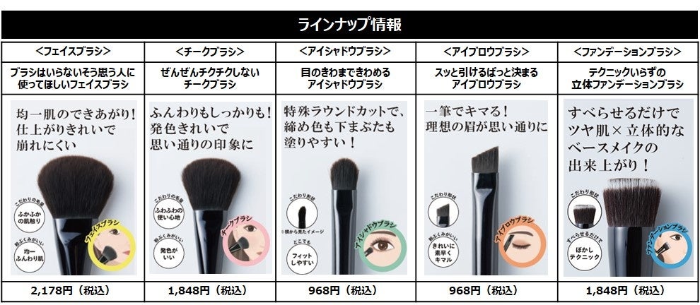 発売済みのフェイスブラシ/チークブラシ/アイシャドウブラシ/アイブロウブラシは、これまであまりブラシを使ってこなかった、ブラシメイク初心者から上級者、さらにはメイクアップアーチストの方からも注目されています。使い心地の良さにも共感いただき、昨年12月の発売以降、累計販売本数が35,000本を突破。本商品の登場により、メイクが一層楽しくなること間違いなしです。