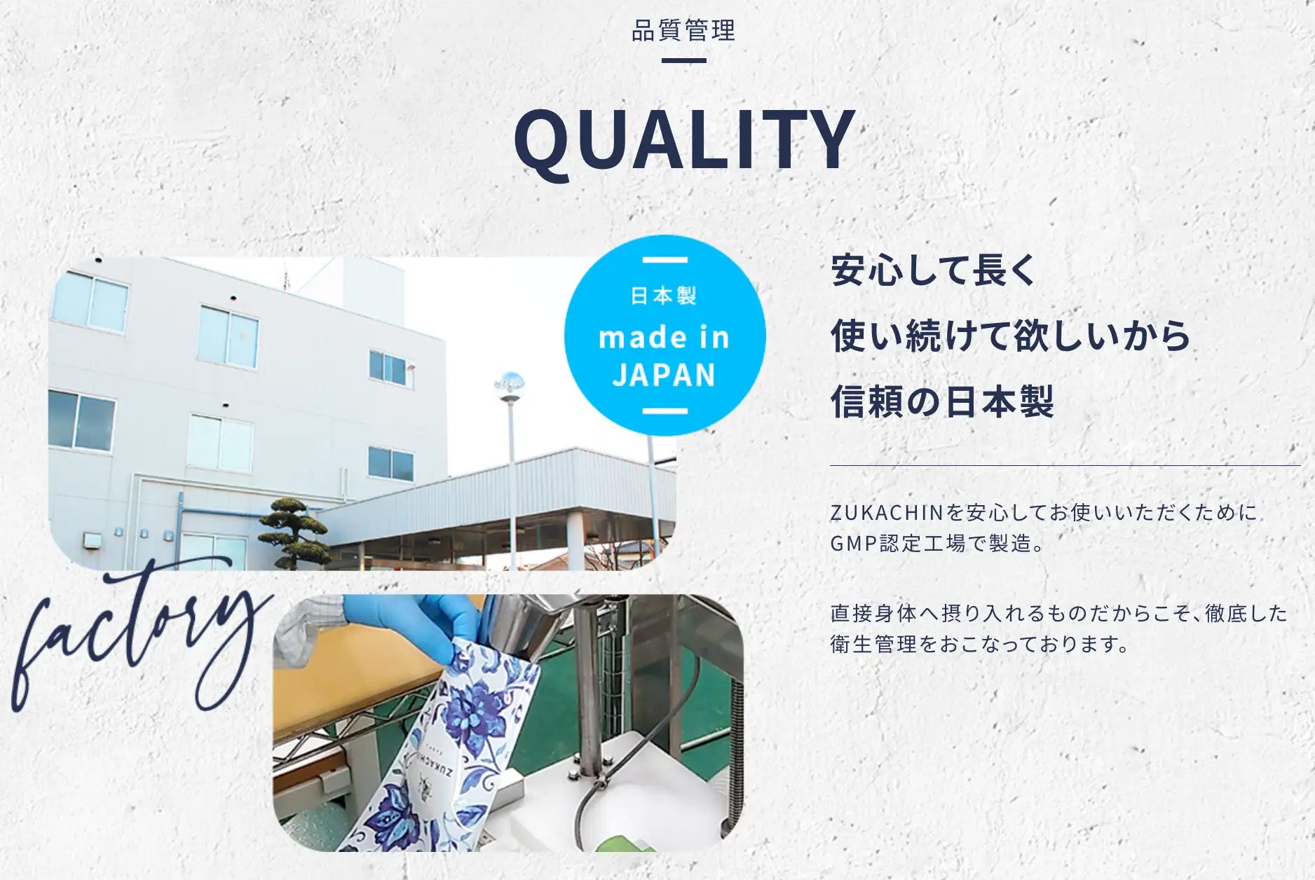 ZUKACHIN(ズッカチン)を安心してお使いいただくためにGMP認定工場で製造。