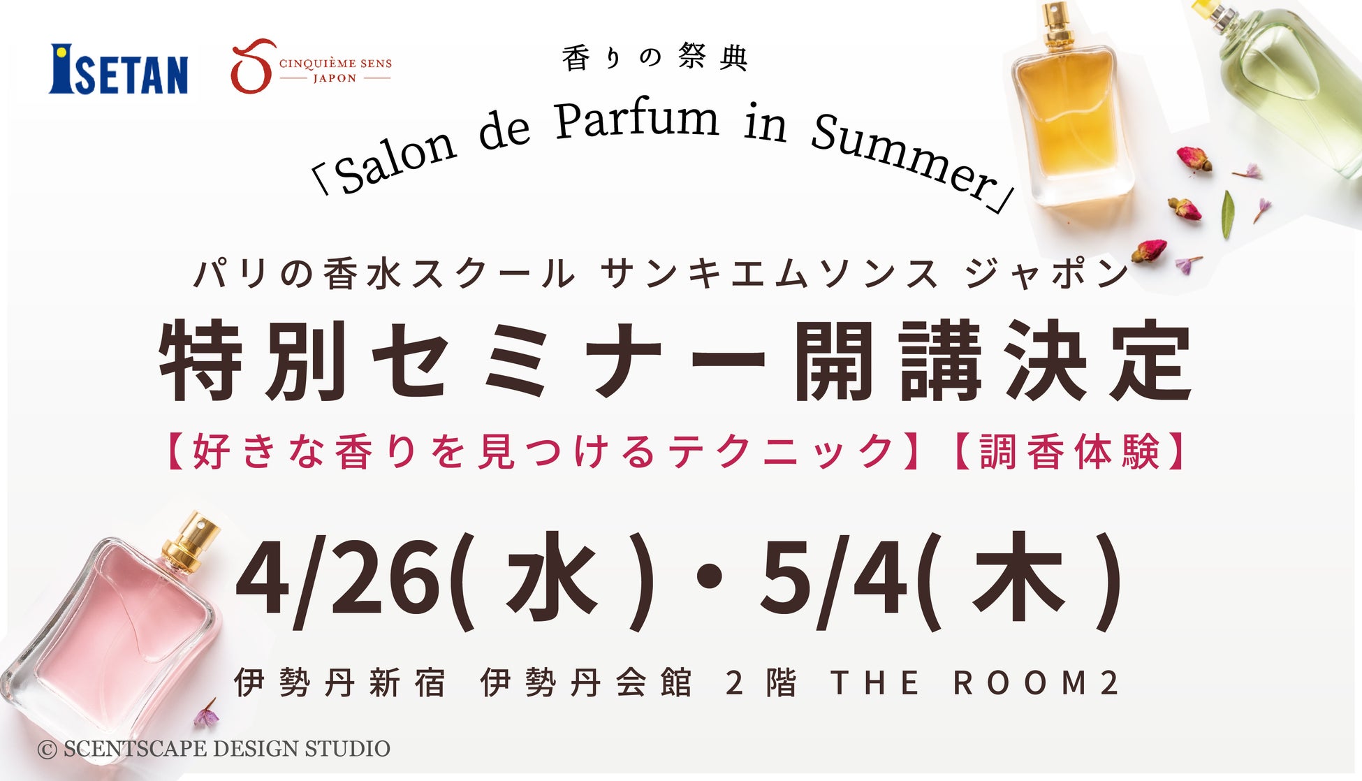 概要:香りのコミュニケーションの基盤となる専門用語「ファセット(香調)」を学び、好みのフレグランスを自分の言葉で表現するテクニックをお伝えする、フレグランス上級者の方におすすめのセミナーです。老舗のフレグランスメゾンやグローバルに注目されるニッチブランドから多くの素晴らしいフレグランスが登場するのは嬉しいけれど、どれを選べばよいのか迷ってしまうこともあるのではないでしょうか。気になる香りにいち早くたどり着くためには、自分の好みを的確な言葉で伝えるスキルが必要です。本セミナーでは、伊勢丹新宿店でお取り扱いのあるブランドからフレグランス6点を厳選し、その香りの表現にもチャレンジします。セミナー後には、皆さまのフレグランス選びにも磨きがかかり、店頭で香りを探す楽しさもますますUPすることでしょう。