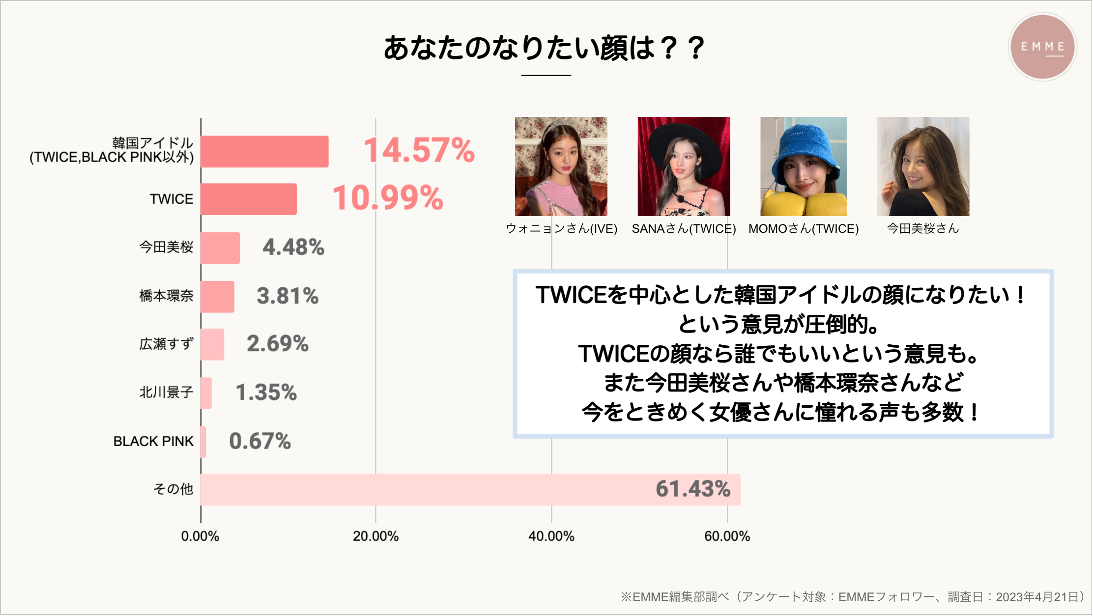 TWICEを中心とした韓国アイドルを中心とした回答が大多数!