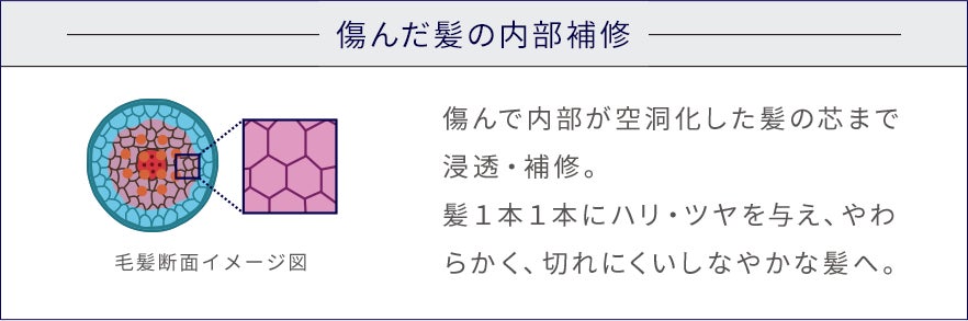 傷んで内部が空洞化した髪の芯まで浸透し、ふっくらと満たして補修。