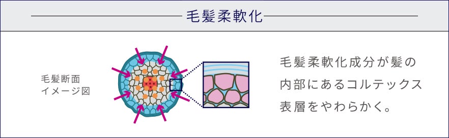 毛髪柔軟成分が髪の内部にあるコルテックス表層をやわらかく整える。