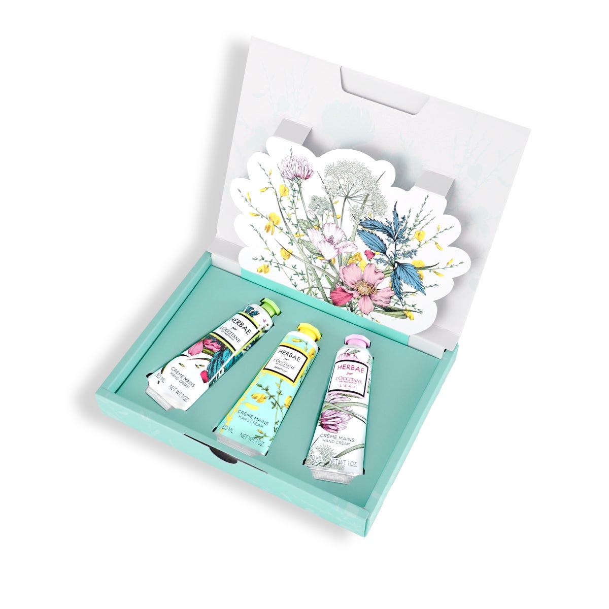 最後にご紹介するのは、プロヴァンスを代表する3つのハーブの香りのハンドクリームが入った「エルバ ハンドトリオ」。明るく華やかなフローラルブーケの限定の香り「エルバガーデン」、清々しいハーバルグリーンシトラスの香り「エルバヴェール」、甘く爽やかなシトラスグリーンフローラルの香り「エルバブランシュ」。全3種のエルバシリーズの香りを贅沢にコンプリートしたハンドキットは、その日の気分に合わせて香りをお楽しみいただけます。さらにパッケージは、ボックスを開けると色とりどりの花々のブーケが飛び出す仕掛けが。手肌も心もうるおう幸せなギフトです。