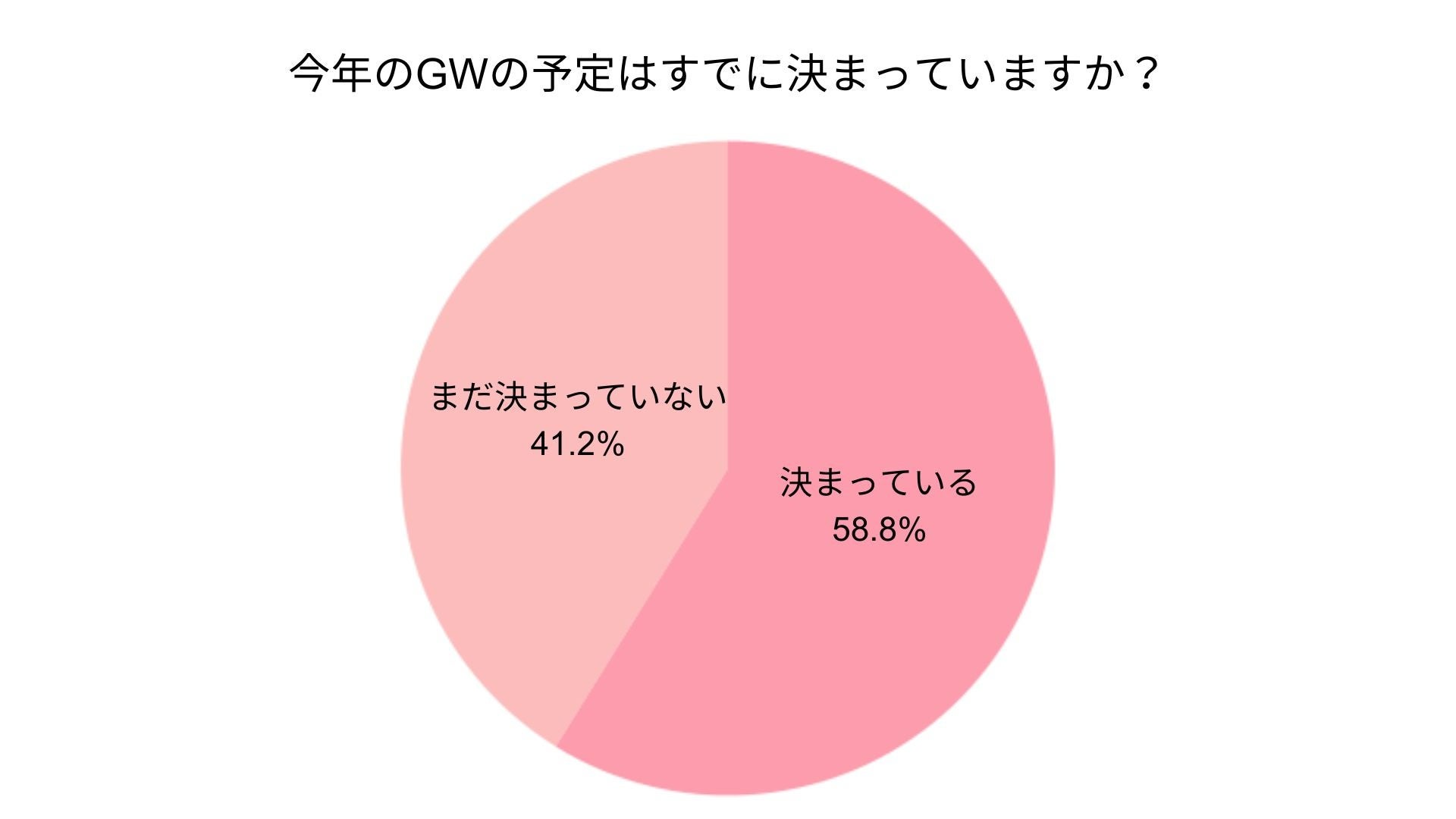 今年のゴールデンウィークの予定が「決まっている」人は、約59%(2023年4月24日時点)。半数以上がすでに予定が決まっていた。