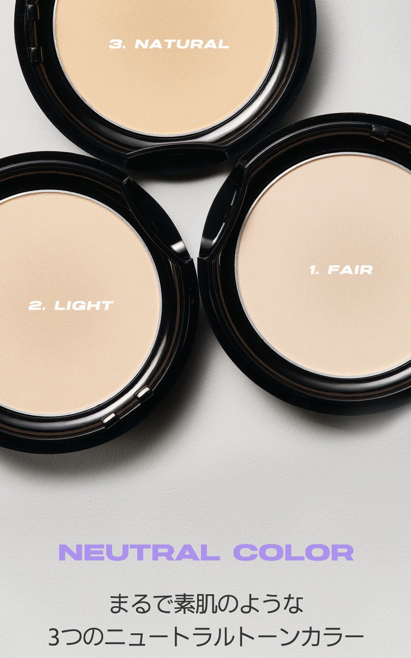 パウダーが肌へ均等に密着、素肌っぽいナチュラルな仕上がりでキメや毛穴をカバーします。