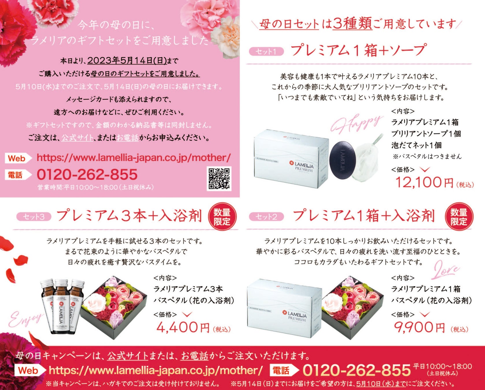 今年の母の日は、いつまでも元気に若々しく過ごして欲しいという想いを込めて、実用性のある健康・美容グッズを贈ってみてはいかがでしょうか。ラメリア・ジャパンでは、そんな母の日に最適な「母の日限定のギフトセット」をご用意しました。