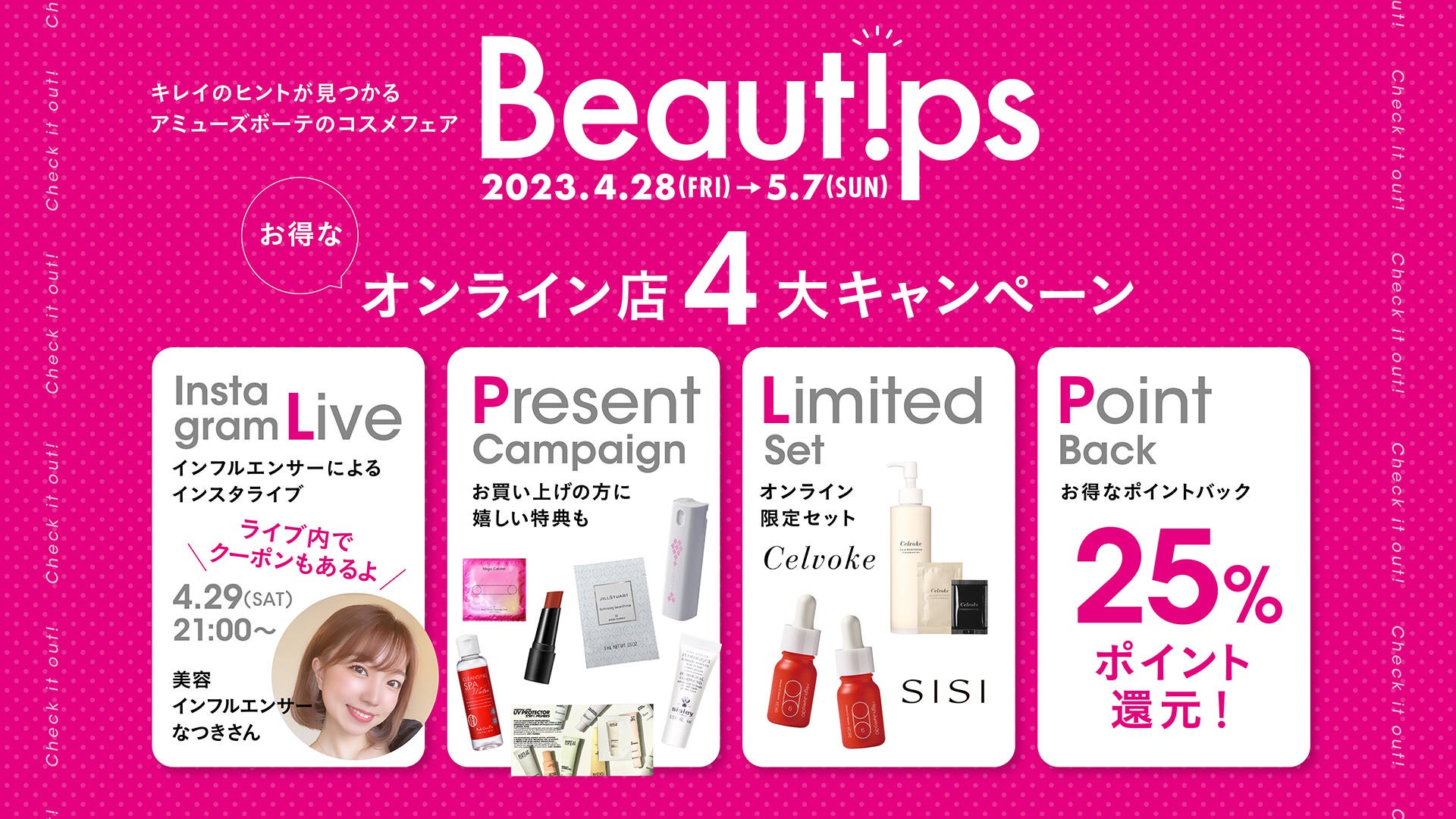 「Beauty」(美)と「Tips」(ヒント)を合わせた造語で、きれいのヒントを見つけてほしいという願いを込めたコスメフェアです。