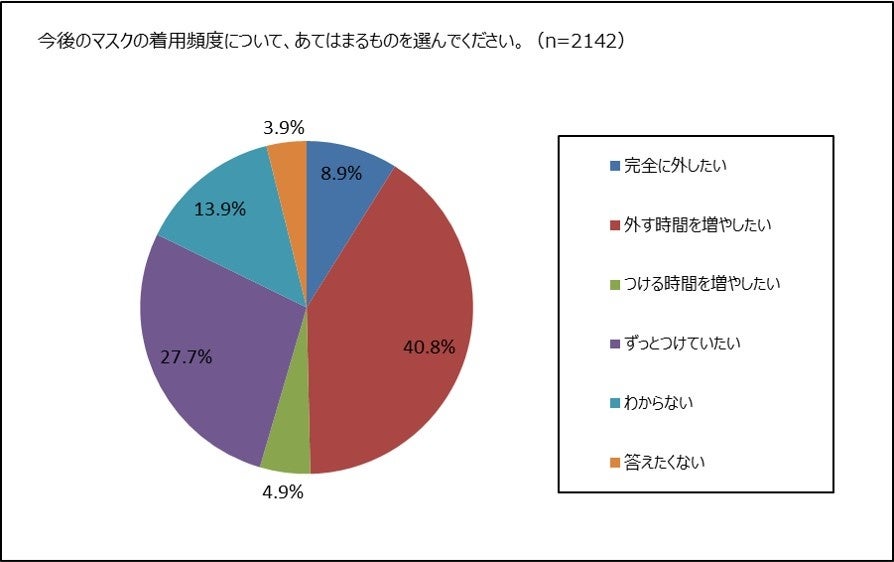 ② 今後のマスク着用、「外したい」約5割。「ずっとつけていたい」約3割。