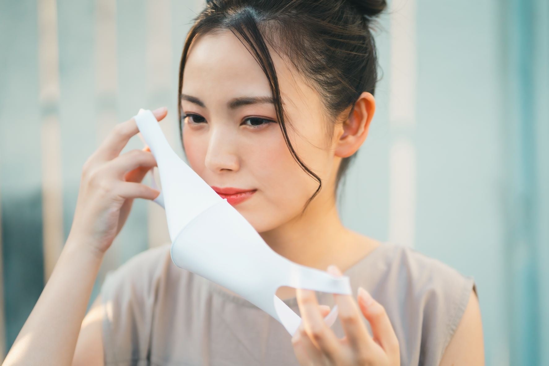 今後のマスク着用意向を聞きました。全体では、「完全に外したい」が8.9%、「外す時間を増やしたい」は40.8%です。また、「つける時間を増やしたい」は4.9%、「ずっとつけていたい」は27.7%と3割近くにも上ります。これを年代別に見てみると、「完全に外し たい」、「外す時間を増やしたい」では、年代による大きな差は見られません。「ずっとつけていたい」は10代で約3割、20代に入ると約2割に減り、それ以降は年齢を重ねるほど割合が増えていきます。「つける時間を増やしたい」が最も多いのは、20歳~24歳で12.7%と1割を超え、他の年代と比べてとび抜けて多いことがわかりました。20歳~24歳の世代は、マスク着用に関して多様性のある意識を持っていることが想像できます。