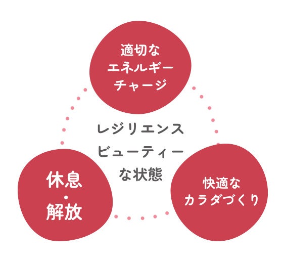 ココロとカラダをしなやかに整えることにより健康と美しさを手に入れる、そんな「レジリエンスビューティー」を目指すための3つの要素を定義しました。