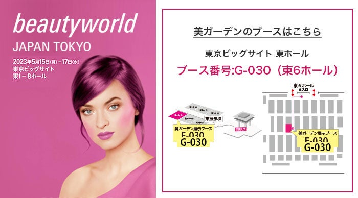 業務用美容機器メーカーの株式会社美ガーデン(本社:東京都北区、代表:藤原裕敬)は2023年5月15日(月)-17日(水)に東京ビッグサイトで開催される「beautyworld JAPAN TOKYO2023」(以下BWJ東京2023)にて東6ホールG-030に出展いたします。