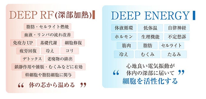 448khzの高周波で身体の深部から温めることにより脂肪の燃焼だけでなく血液やリンパの流れの改善、基礎代謝向上などの効果が期待できます。