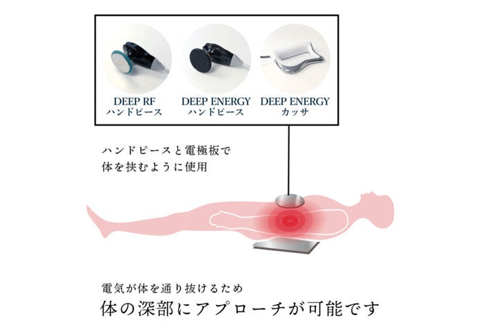 また、体外熱源(温泉やサウナなど)と違い体内熱源による深部温度の上昇は持続時間が長く、施術箇所以外にも熱が広がるのが深部加熱の特徴です。