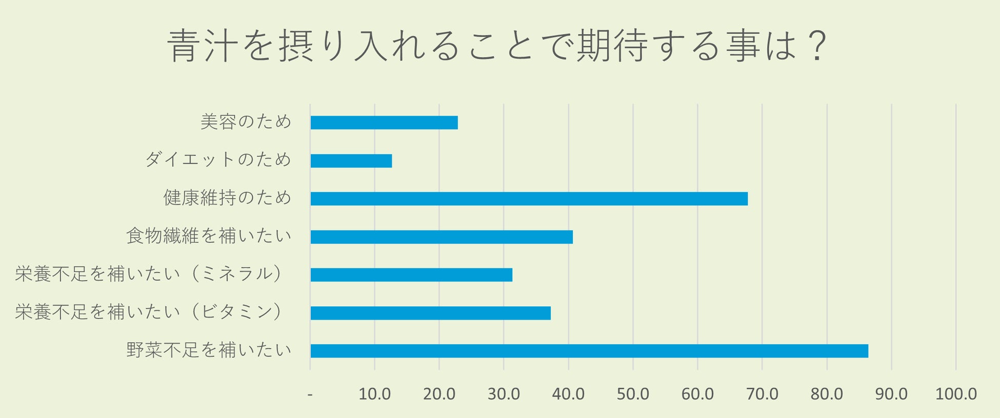 また、同調査では野菜を食べる理由として、純粋に「野菜が好き」や「美味しい」から食べている人が約半数という調査結果も。野菜が苦手で食べられないから青汁で補うというよりも、野菜感を感じられるものが好まれるのではないかと考えました。
