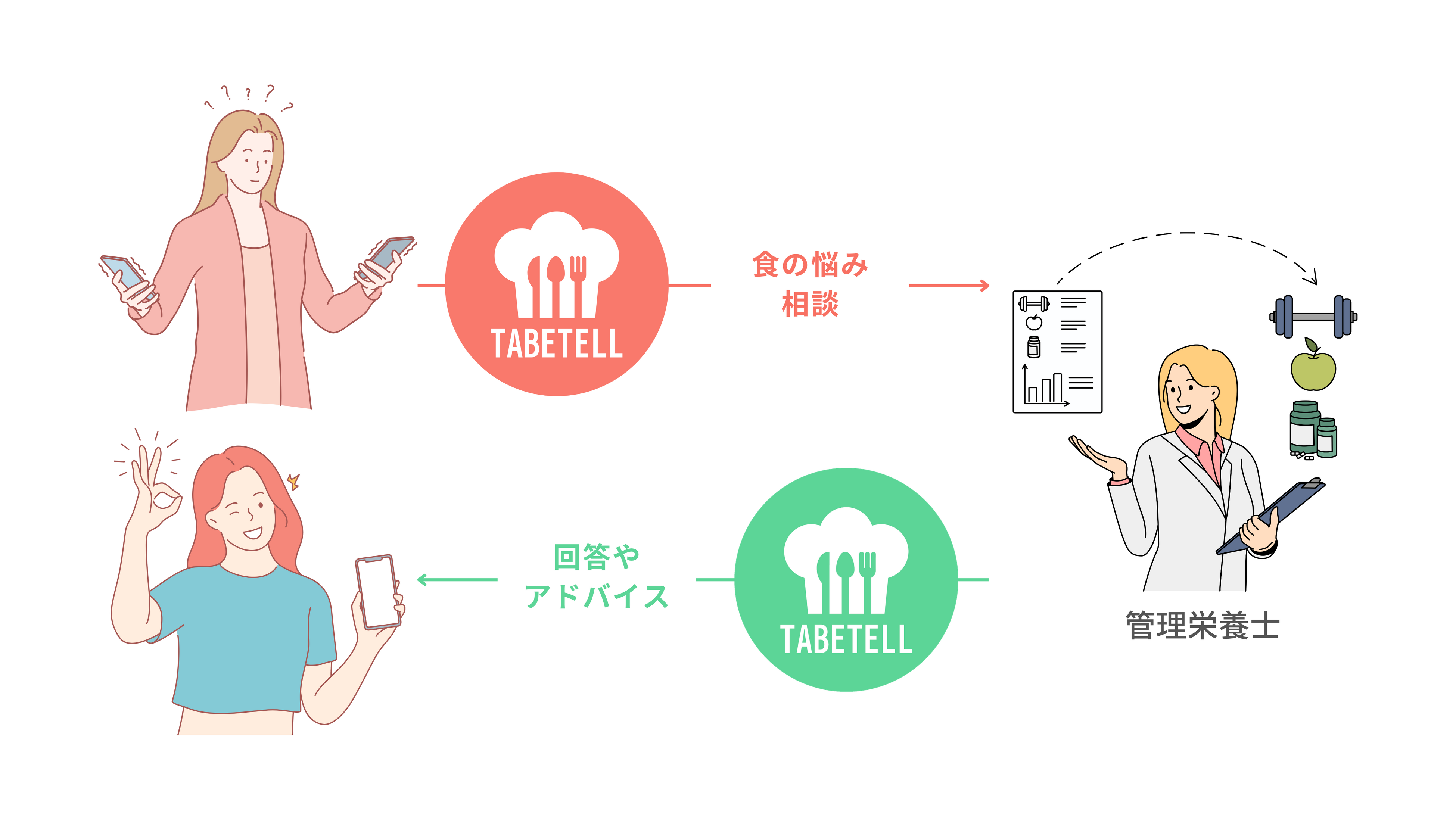 TABETELLは、「食・栄養の悩み」の解決に特化した、管理栄養士のシェアリングプラットフォームです。