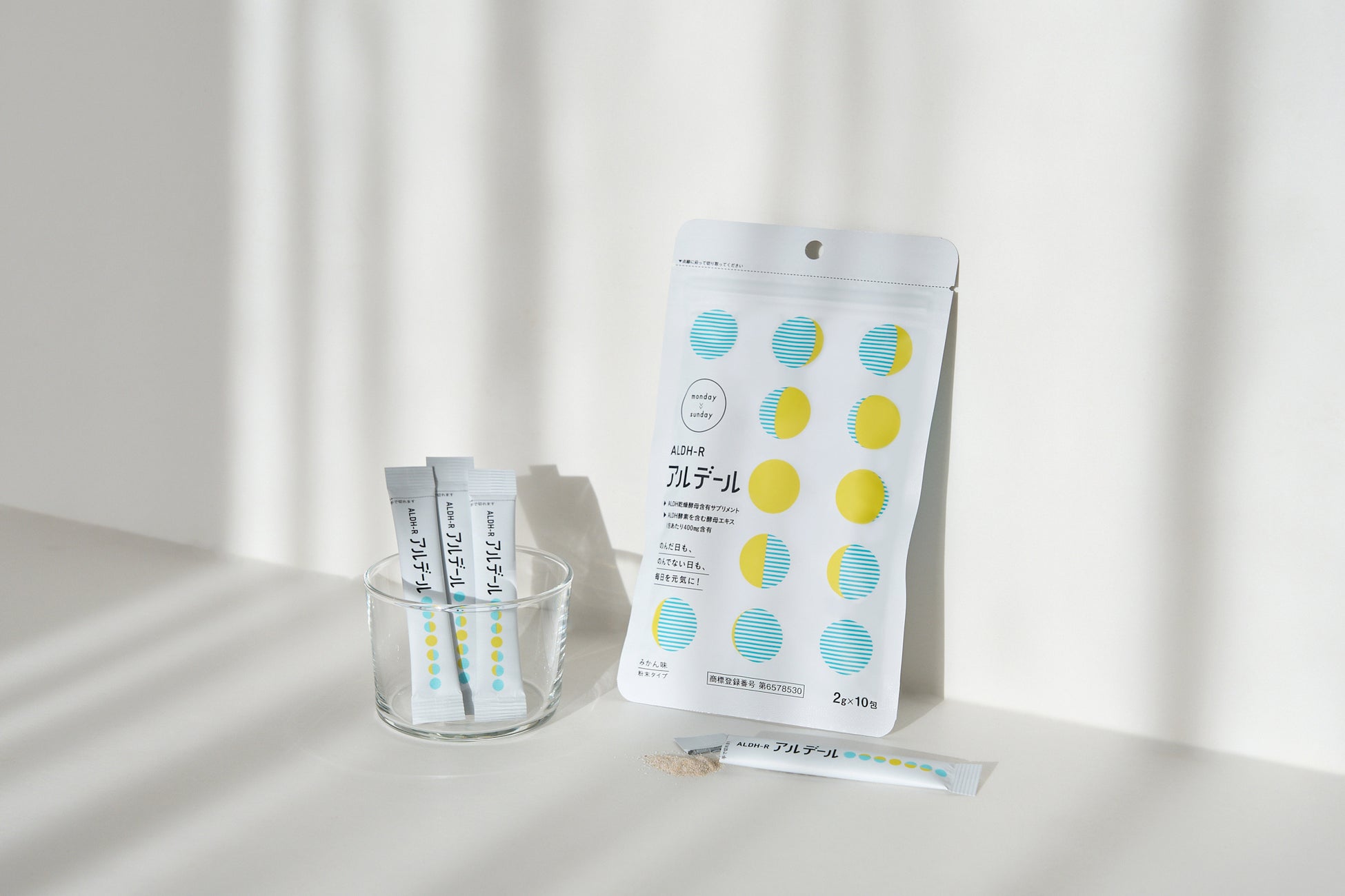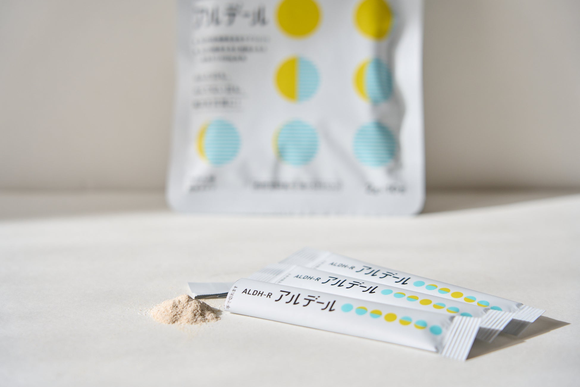 健康維持のために⼤切な酵素といわれている「ALDH2(※アルデヒド脱⽔素酵素2)」は⽇本⼈の約44%が不足しているといわれています。この「ALDH2」をバイオテクノロジー企業の研究により⼤量抽出に成功し、開発されたのが新時代デイリーケアサプリメント『アルデール』です。『アルデール』には、ALDH2を含むALDH乾燥酵母、米発酵パウダーその他にもグルタチオンやビタミンC、ビタミンAなどを主成分としています。外出先でも⼿軽に摂取でき、体の調⼦をしっかり整えてくれることが期待できるサプリメントです。