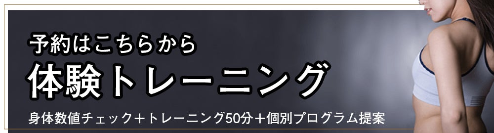 ■体験トレーニング…トレーニング50分+身体数値チェック+食事を含めたプログラムのご提案をいたします。