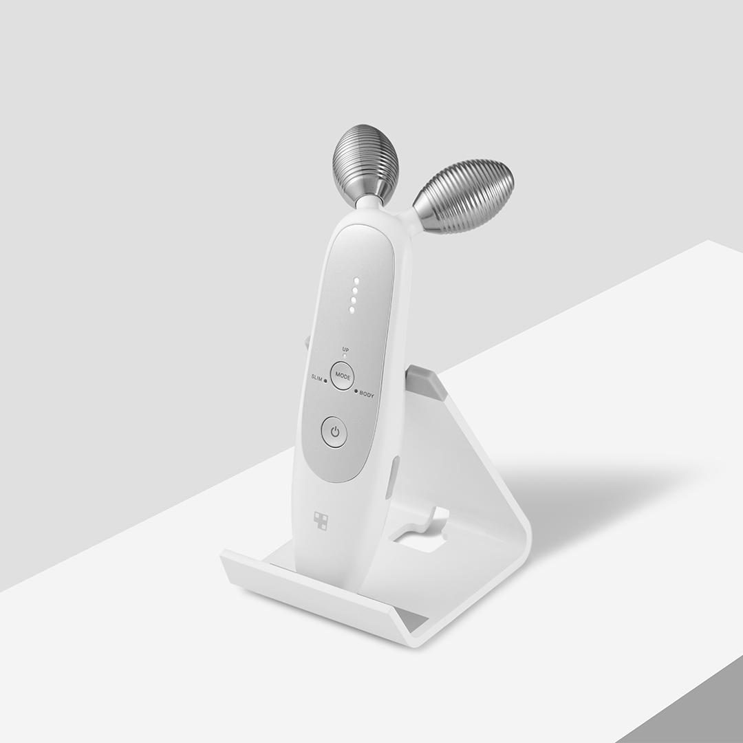 「エージーアール(Age-R)」はメディキューブが開発した最初の美顔器です。中周波(EMS)を利用した小顔ケア美顔器で、気になる部分を引き締め、フェイスラインのケアを助けます。筋肉を動かし、普段使えていない表情筋などを運動させて顔の筋肉を鍛えることで、見た目年齢の引き下げ効果を導きます。