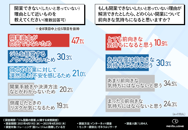 では、それらの“ジムを開業できない理由”が解消できれば、開業に向けての姿勢は変化するのでしょうか。