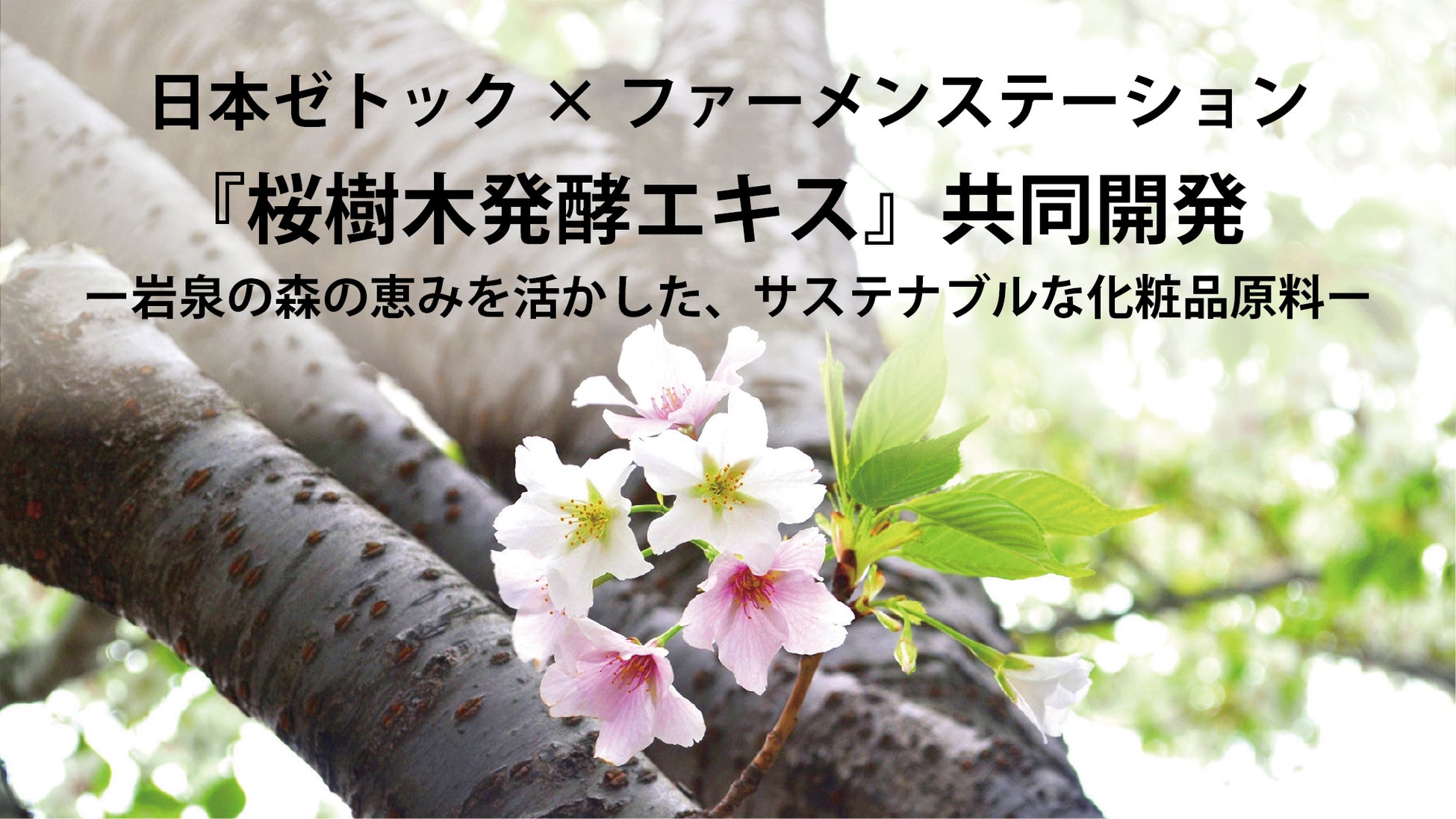 東北を愛し東北を知り尽くした地元企業とのコラボ商品を世に送り出す「東北応援プロジェクト」を東日本大震災後、継続している日本ゼトック株式会社(本社:東京都新宿区、代表取締役社長:神保 貞夫、以下日本ゼトック)は、岩手県岩泉町産の山桜を用いた化粧品原料である『桜樹木発酵エキス』を、2023年5月17日~19日にパシフィコ横浜にて開催される「第11回化粧品産業技術展(CITE JAPAN 2023)」に出展いたします。本原料は、同じく岩手県の奥州市に研究開発拠点兼自社工場(奥州ラボ)を持ち、独自の発酵・蒸留技術でエタノールやサステナブルな化粧品原料などを開発・製造している株式会社ファーメンステーション(本社:東京都、代表取締役:酒井 里奈、以下ファーメンステーション)との共同開発となります。