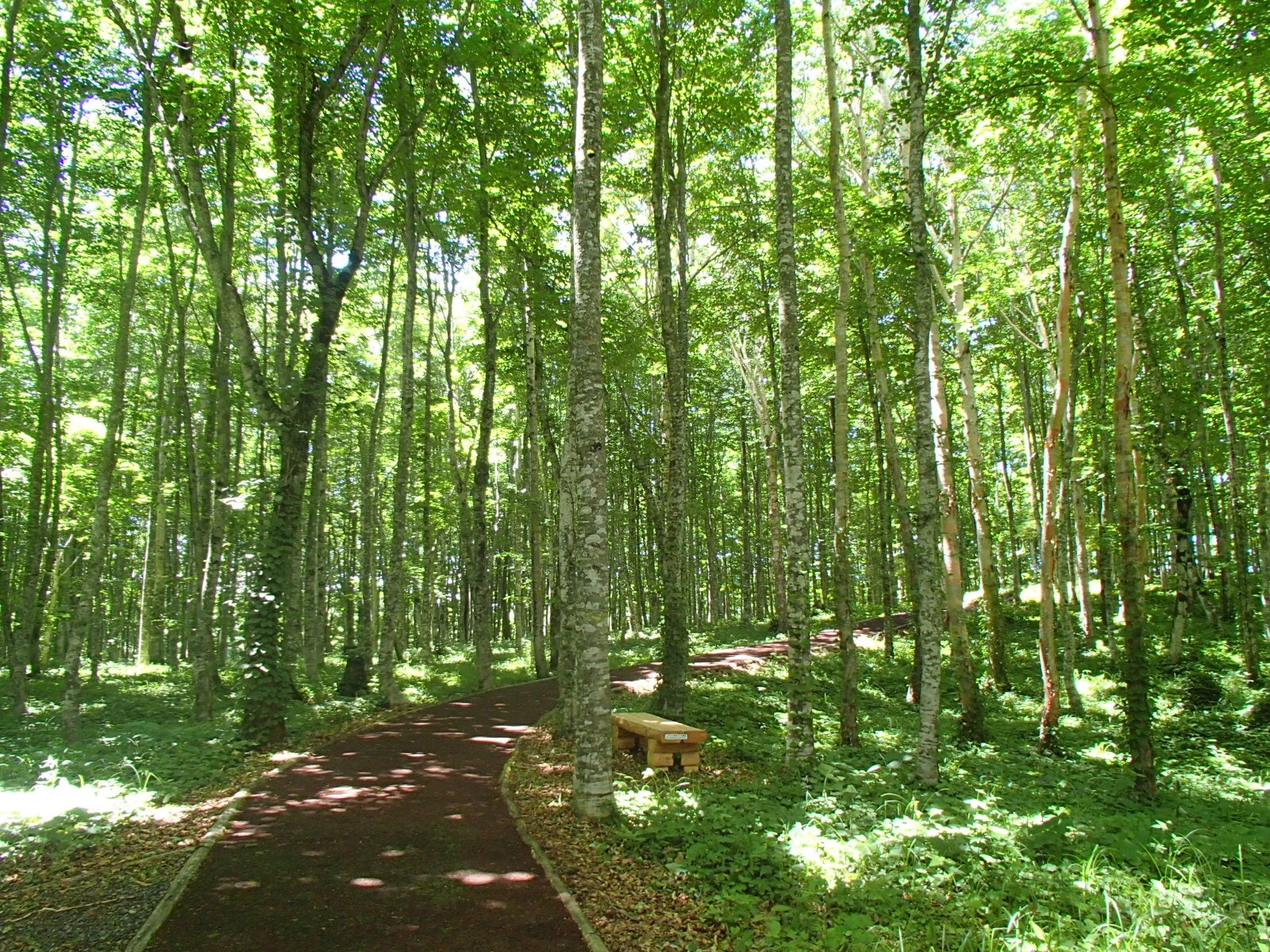 本州一広い町・岩手県岩泉町には、町の総面積の9割を占める森林が広がっています。広葉樹を中心とした天然林と人工林がモザイク状に分布しており、樹種ごとに丁寧に選別して用いる林業が昔と変わらず今も営まれています。広葉樹は伐採した切り株からまた新たに芽吹いて再成長するため、植林する必要がありません。これは萌芽更新と呼ばれます。定期的に木を切りだして森の若返りを図ることは、里山の維持には欠かせないものです。伐採により切り開かれた土地には明るい日光が差し込み、様々な植物が育つことで生物多様性が保たれます。