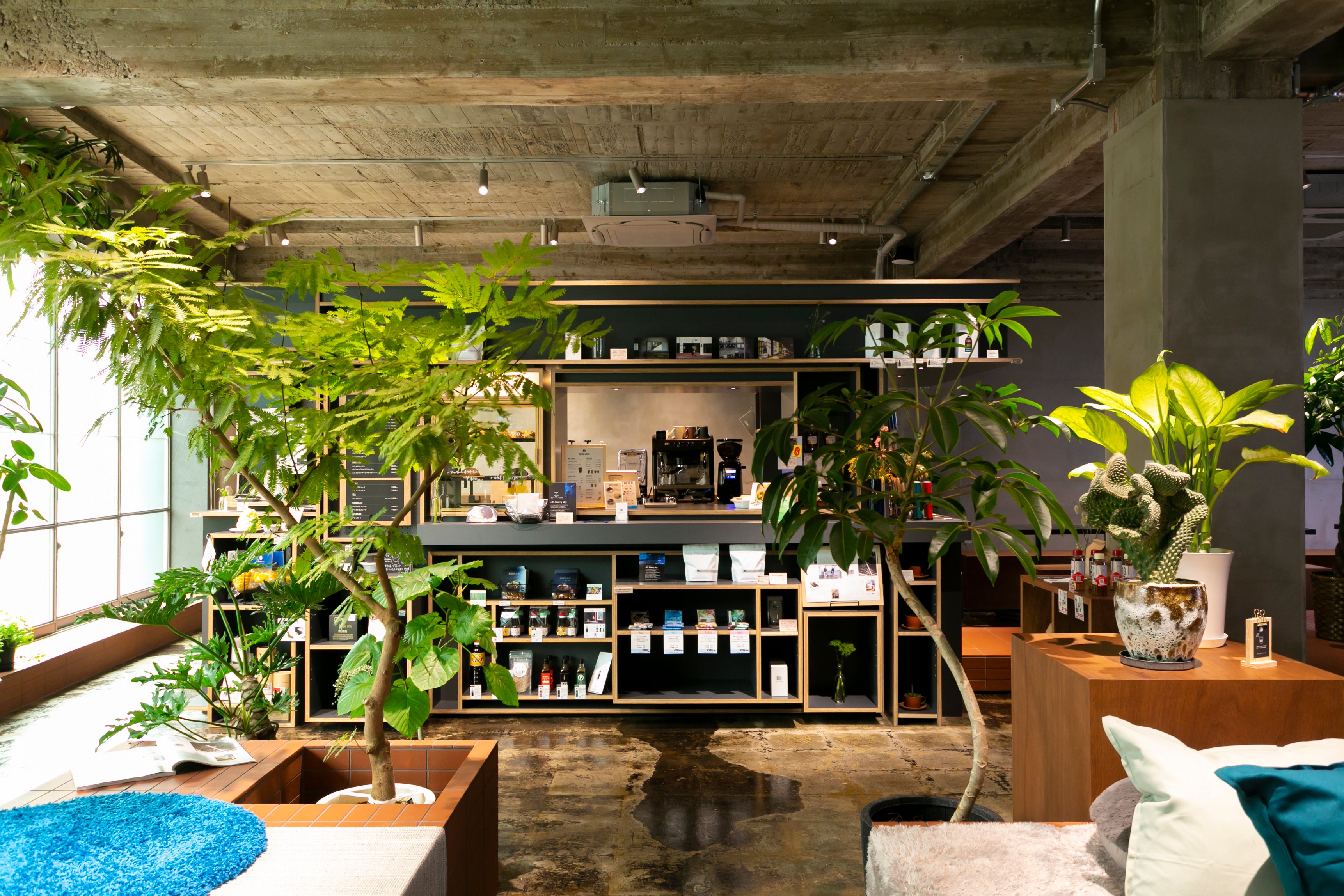 ① オリジナルブレンドを用いた焙煎室と、憩いの場となるようカフェを習慣にするコーヒースタンド。