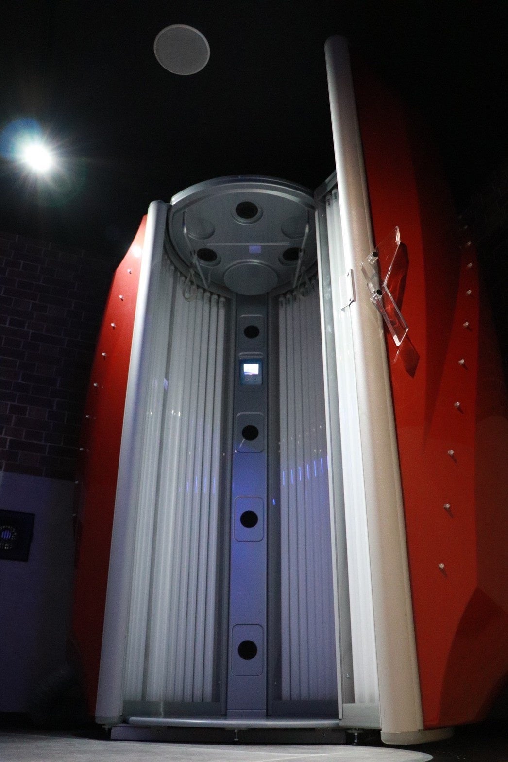 ランプは9,400W以上。マシン内はまんべんなく日焼けができるワイド設計。